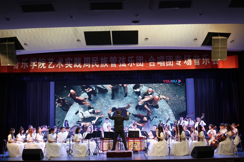 best365英国体育在线民族管弦乐团,成立于2008年,多次获得“江苏省老员工艺术展演”专业组一等奖。该团演出作品风格与演奏形式多变,并多年承担校内外各项演出任务。上半场由弦乐团为大家带来了《风雷引》《卷珠帘》《霍元甲》以及有best365英国体育在线合唱团助演的《红高粱》。