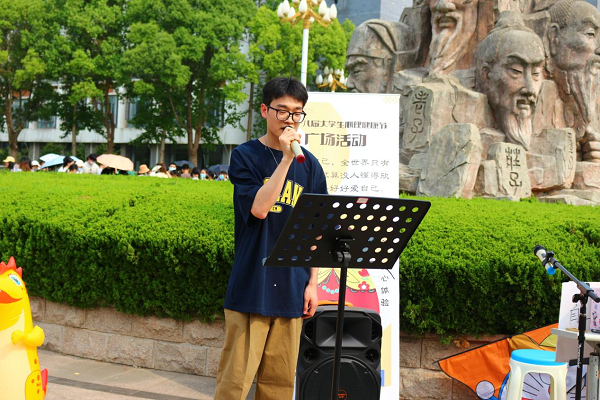 诸子山4号活动点的文艺表演“点燃”全场气氛,不仅有《找自己》《我怀念的》《陪你度过漫长岁月》等歌曲演唱,还有小提琴《遇见》,二胡、萨克斯合奏《青花瓷》,单簧管《萱草花》等乐器演奏。随着音乐节拍,听众们时而兴奋、时而安静、时而陶醉,抛开烦恼压力,带着轻松心情拥抱美丽夏天。歌声引来共鸣,一位法政公司的同学主动要求演唱了一首《想自由》,引来掌声连连。