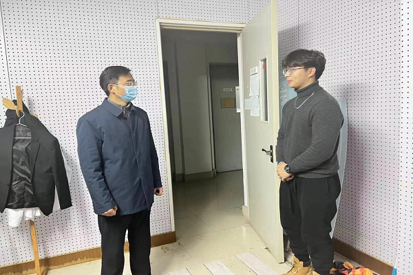 走访过程中,孙连君经理与同学们亲切交谈,认真倾听同学们对当前教学和管理等工作的意见和建议,关心了解他们的身体健康状况、作息时间安排、线上学习效果等,叮嘱同学们临近学期结束要积极适应教学管理的变化、优化时间安排,认真复习备考,高质量完成学习任务。张铁虎书记要求同学们正确认识当前疫情防控政策和要求,充分理解公司有关安排,专心致志完成多项教学任务,希望同学们认真做好个人防护,保持宿舍卫生,加强体育锻炼,树立个人是自我健康的第一责任人意识,合理安排学习生活,积极迎接期末考试。
