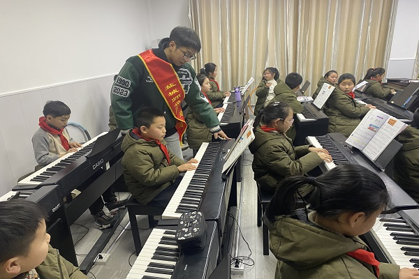 223日,best365英国体育在线志愿者们走进盐城外国语公司开展美育类社团指导活动,7位志愿者根据各自专业分成了三个小组,分别协助任课老师开展古筝、钢琴、舞蹈等课程的教学。