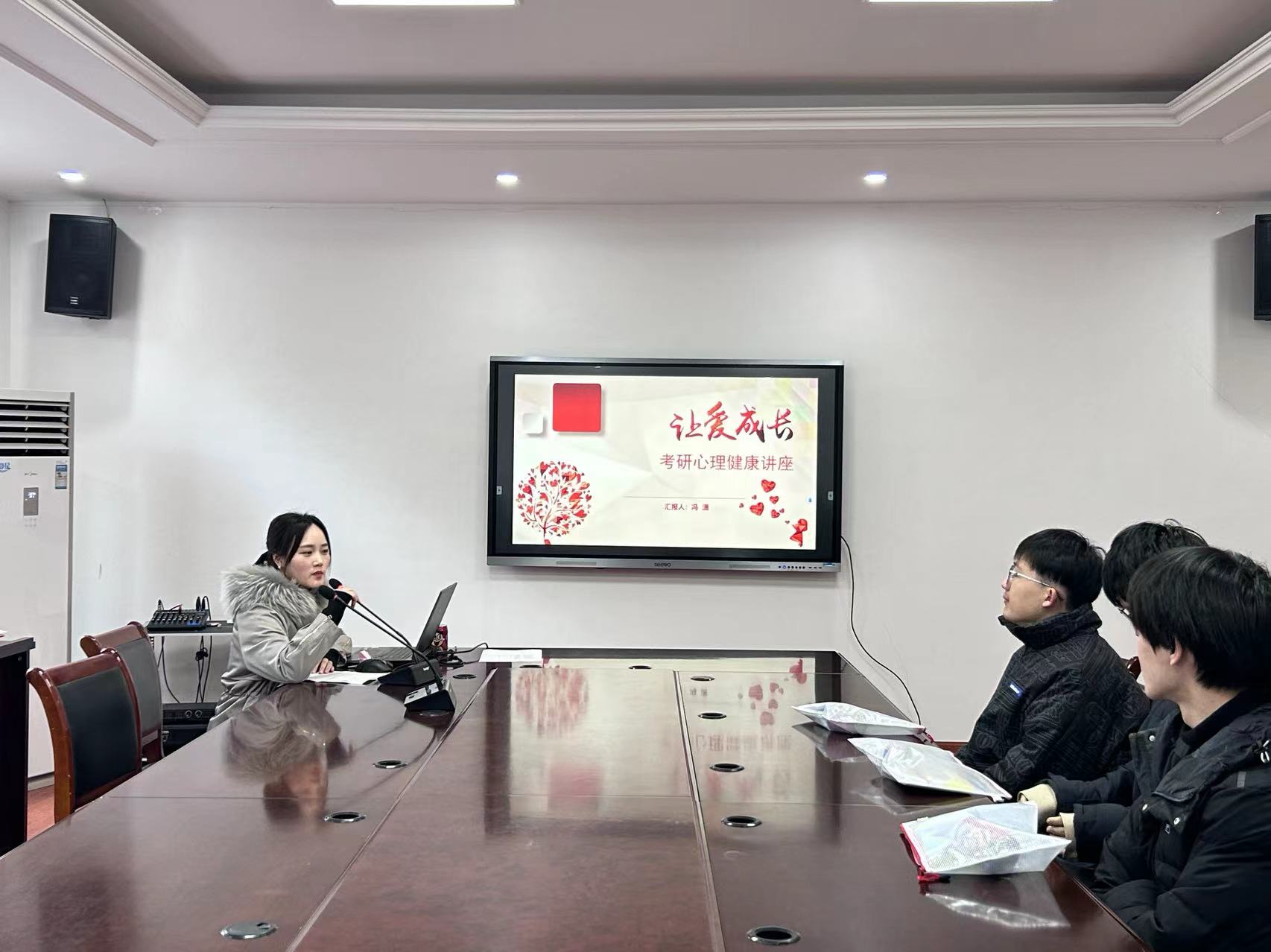 本次活动分为两个部分。孙连君、张铁虎从考试答题技巧、生活关怀、心态调整等方面为考研同学作悉心指导,并发放考研“加油包”。现场还播放了学弟学妹们的祝福视频,让广大考研同学倍感振奋和暖心。随后,公司心理辅导员从合理安排学习与休息、转移注意力、多与朋友交流心得等方面提出应对考前焦虑的具体举措,帮助考研同学缓解考研压力,增强考研信心。
