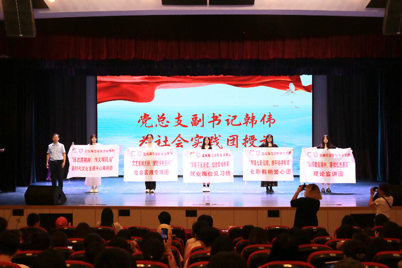 紧接着,暑期社会实践团团长分别向同学们介绍项目内容,并号召同学们积极报名参加。随后,公司党总支副书记韩伟向各实践团授旗。