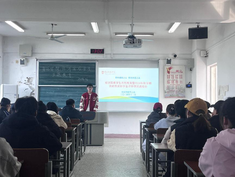会上,公司资助辅导员毕羡惠老师介绍了国家奖助学金、助学贷款、校勤工助学岗位和临时困难补助申请等一系列资助政策。接着又通报了公司2023-2024年国家励志奖学金评审情况,并对后一阶段经济困难员工思想教育、学业帮扶和职业发展提出了具体方案。随后,公司2024年国家励志奖学金获得者许俊杰同学向全体同学分享了大学三年来学习成长经历和学习方法。他鼓励全院同学在积极参加各项活动,勤奋学习。最后,公司党总支副书记韩伟老师讲话。他希望全体经济困难员工要珍惜国家资助、正视贫困,常怀感恩之心,常思奋斗之志。他要求全体经济困难老员工珍惜机会,努力学习,不断提高自身素质,通过自身努力改变命运,展现青年老员工的责任与担当,用优异的成绩回报国家和社会,回馈父母亲人。
