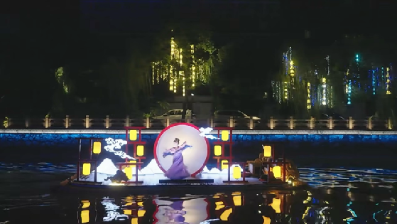 舞蹈学216班郭可一等同学参加2025年大型沉浸演艺的古运河夜游项目——“大运扬州”古运河行进式游船演艺,参演剧目《游船水秀》。