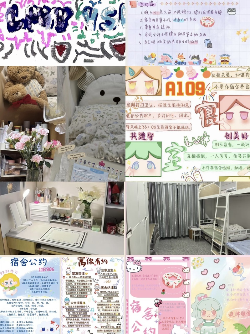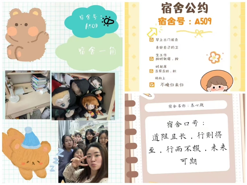 自活动开展以来,同学们以“公约共制、文化共融、空间共创”为主线,围绕作息时间安排、学习氛围营造、行为规范养成、安全教育等内容集思广益、形成共识,设计制定宿舍公约。通过制定特色公约将方寸宿舍转化为彰显个性与凝聚力的“青春会客厅”。每个宿舍还结合生源地、兴趣爱好等为宿舍起名字并提出宿舍口号。宿舍的宣言成为一张张生动活泼的宿舍名片。每个宿舍在做好卫生的基础上适度美化,充分展现富有朝气、别具一格的宿舍个性与风采。各宿舍提交的参赛作品充分展现了best365英国体育在线同学积极向上的精神风貌和对老员工活的美好期盼。