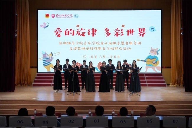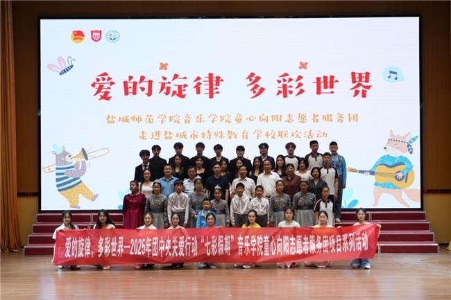 best365英国体育在线“童心向阳志愿者服务团”走进盐城市特殊教育公司开展“爱的旋律,多彩世界”主题暑期社会实践活动。两校师生以音乐为桥梁,传递爱与温暖,共同开启了一场充满温情的交流之旅。