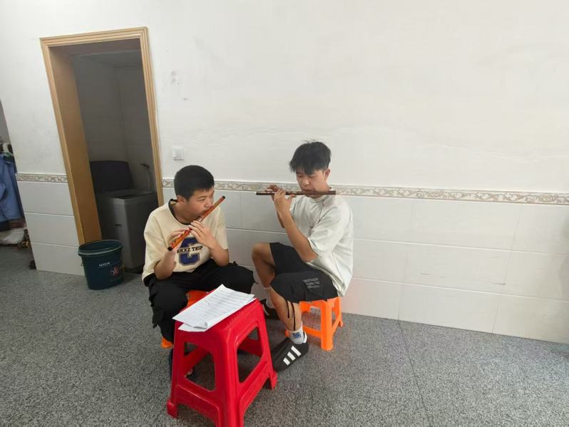 这是服务团创新推出的“触觉音乐教学法”。针对特殊员工的特点,张博尧将抽象的乐理知识转化为可触摸的实体体验。他特意在笛子上贴了不同材质的标记:丝绸代表连音,砂纸表示吐音,让小兴通过指尖就能分辨演奏技法。